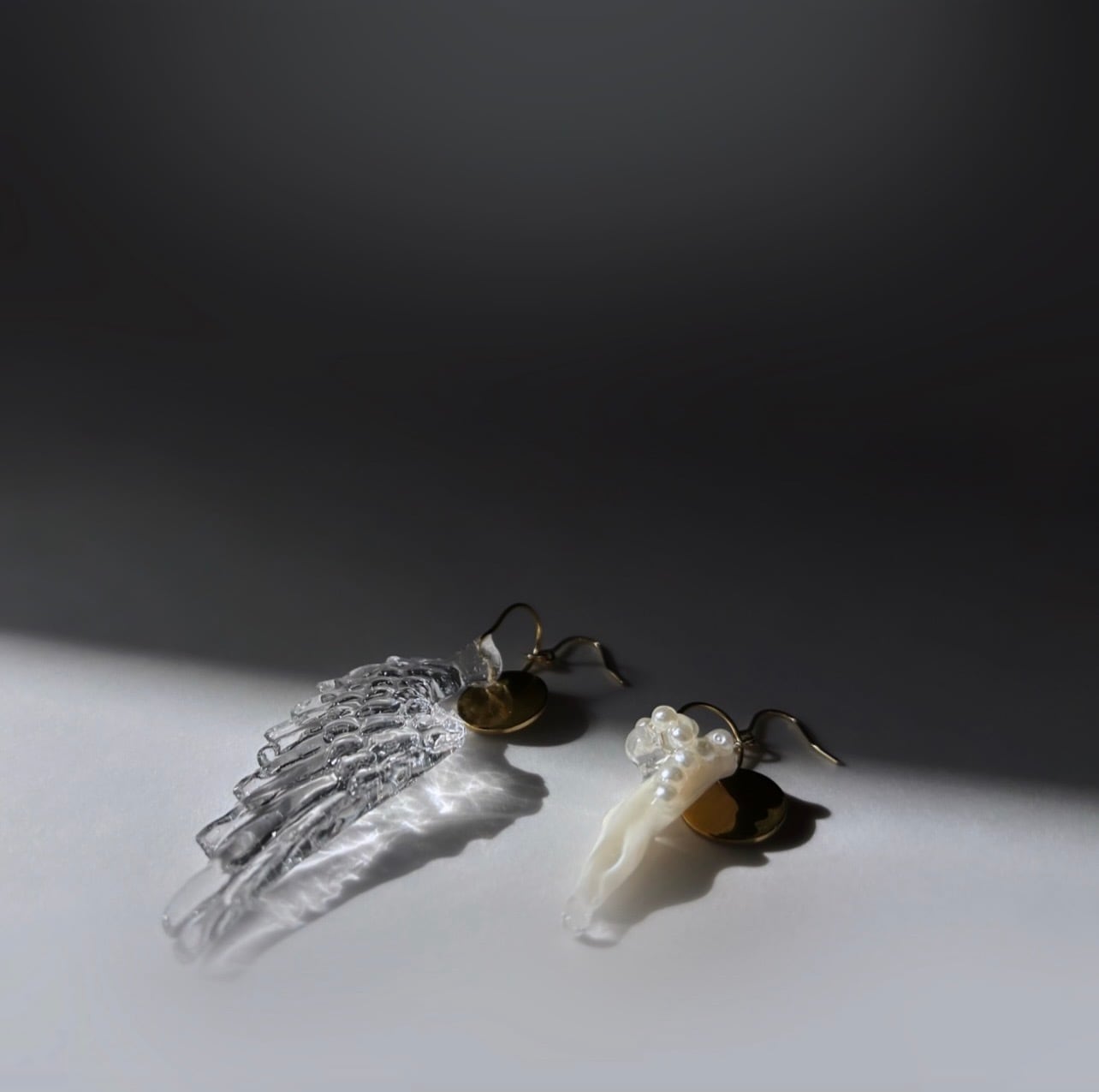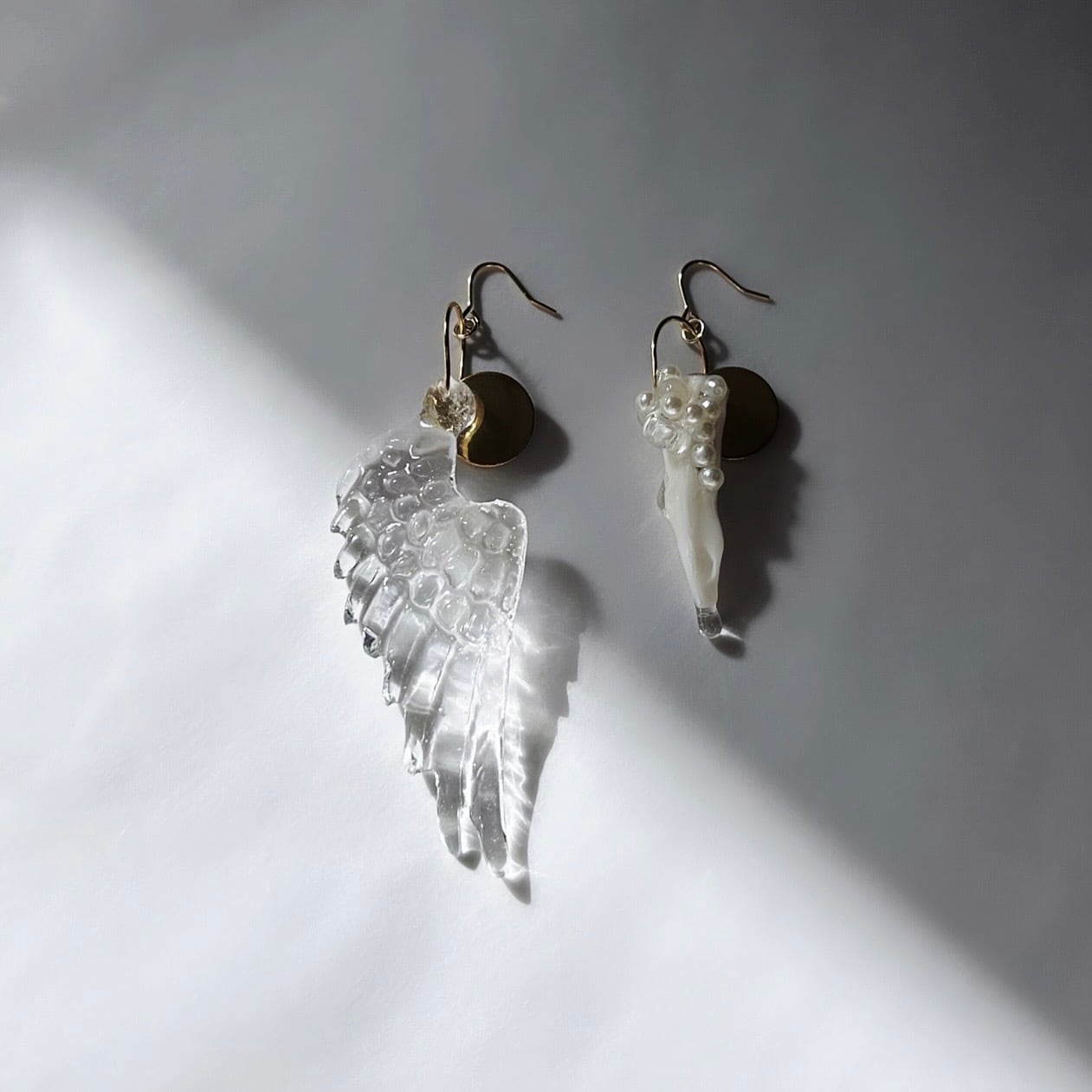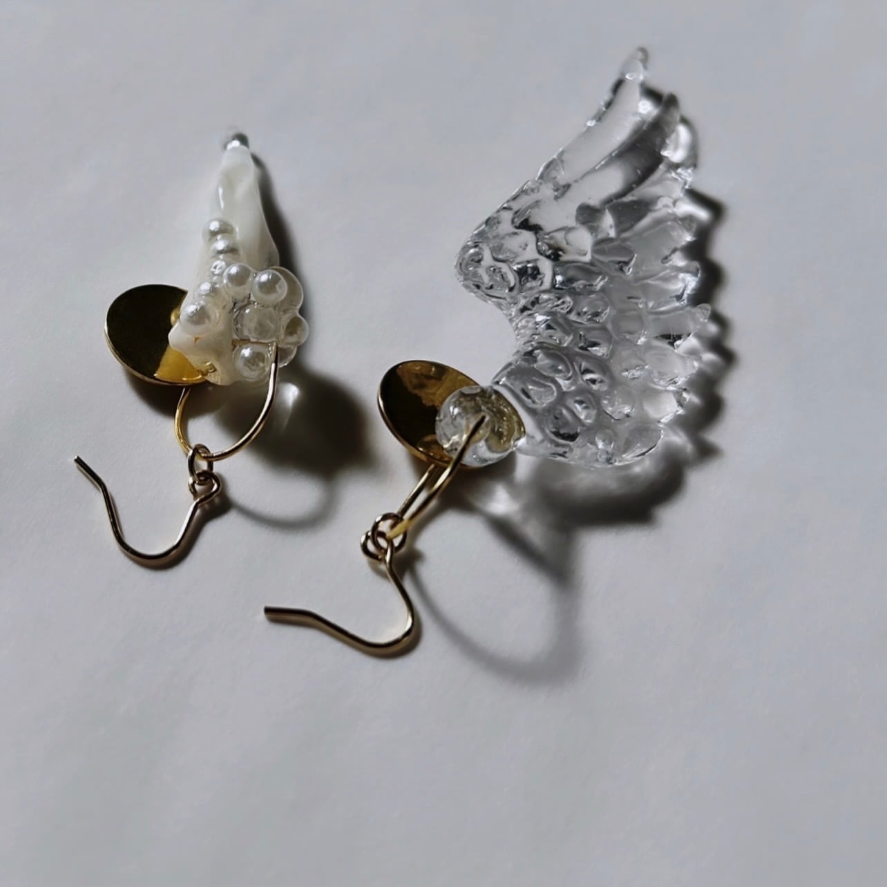 大きな羽とシェルのピアス