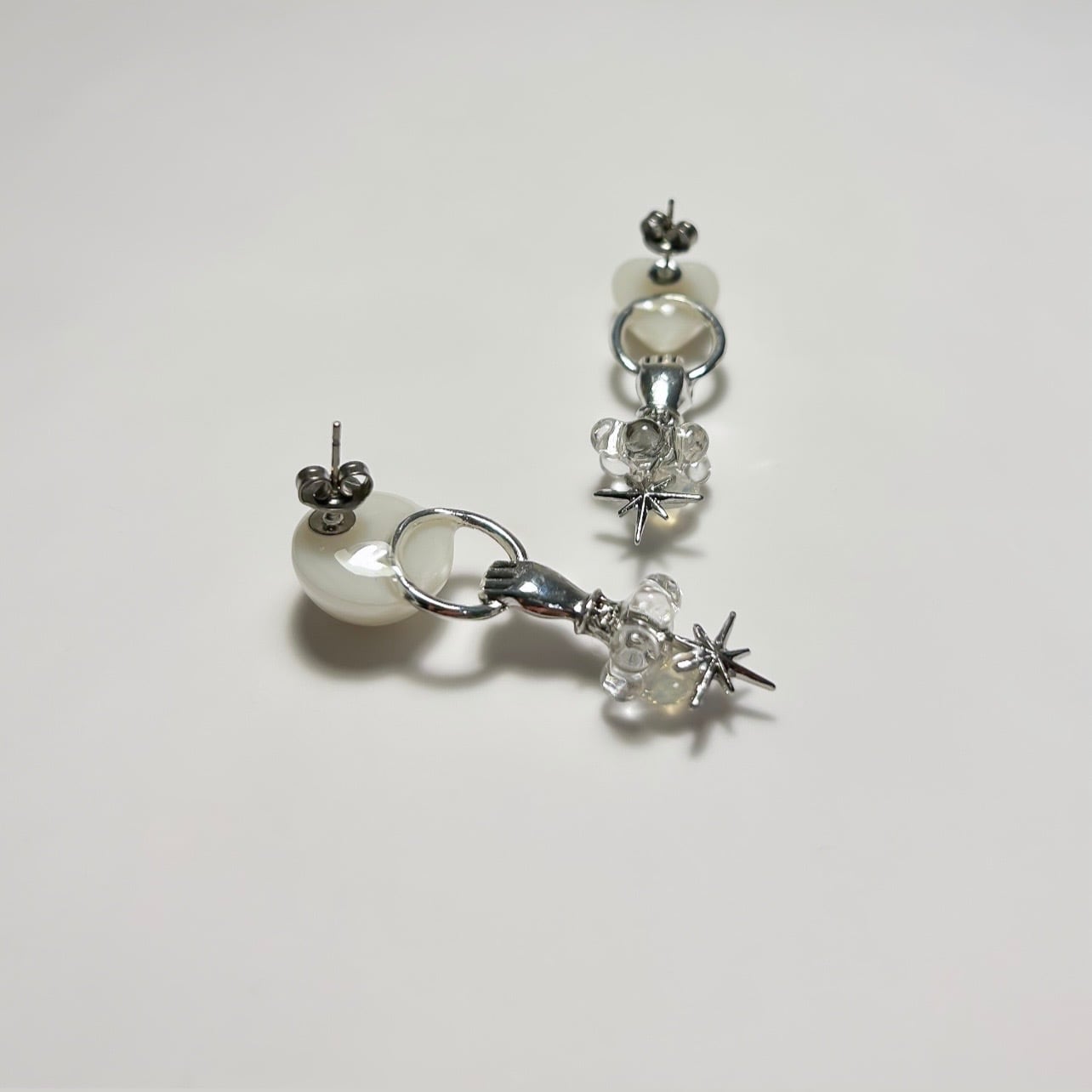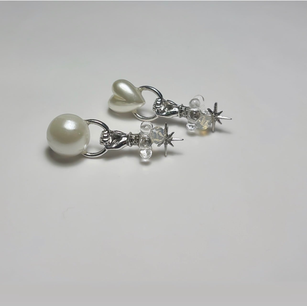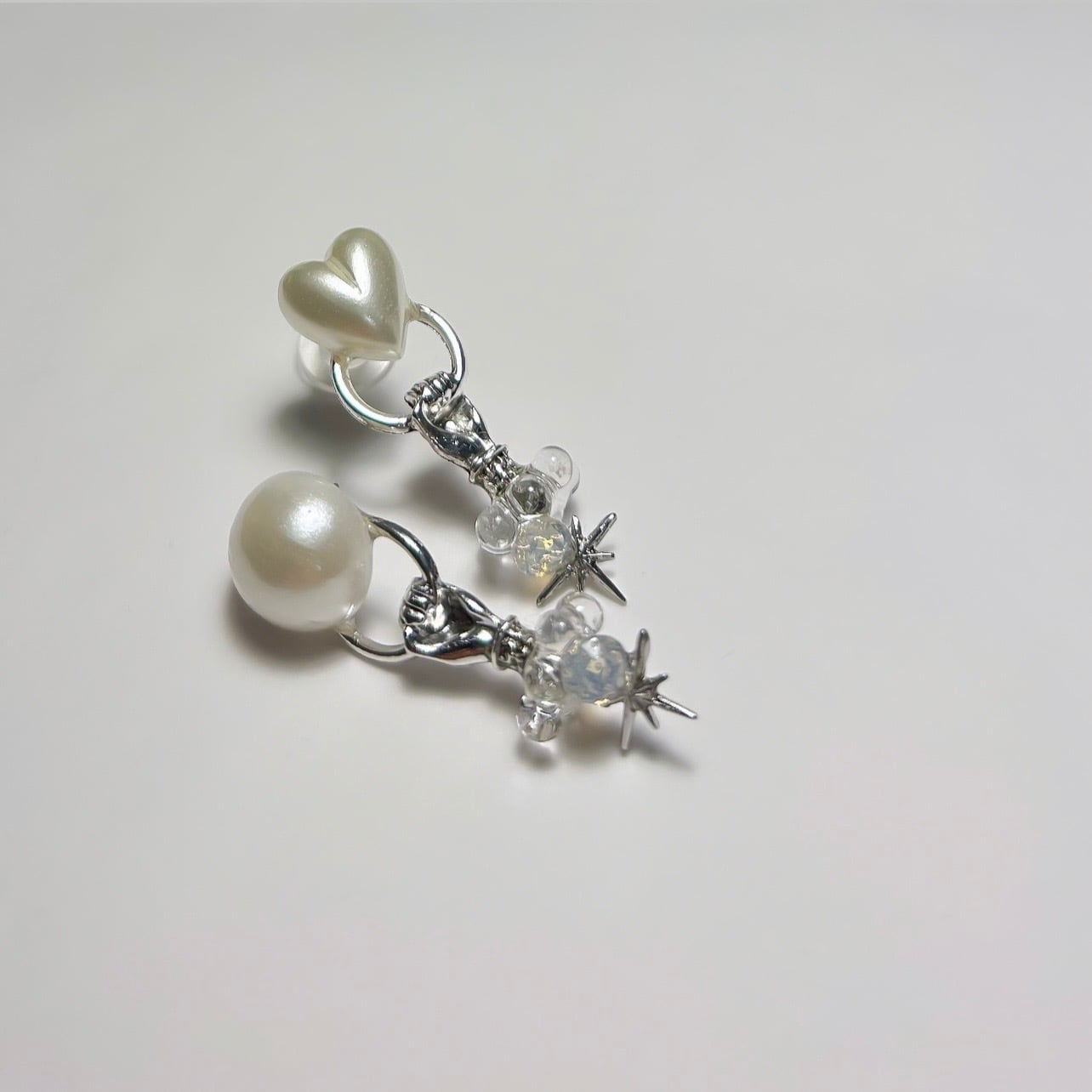 パールをつかんだその手を耳に